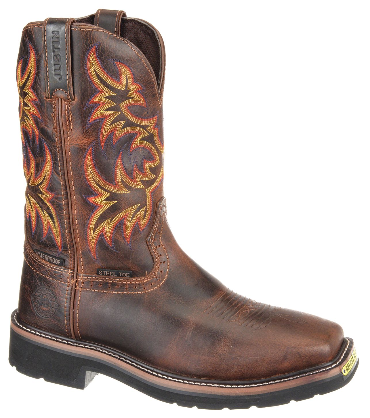 For buyers who need a genuinely functional work boot in a western style, Justin delivers American-made quality at prices that working people can afford. The J-Flex Comfort System insole and steel shank construction in the work boot lines meet ASTM safety ratings for electrical hazard and slip resistance — these are boots designed for the ranch and the job site, not for display.