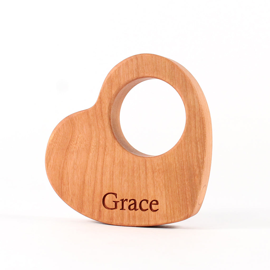 Every Smiling Tree Toy is handcrafted in the Minnesota barn workshop using three sustainably sourced American hardwoods: maple, cherry, and walnut. The wood is finished with an organic oil — a penetrating finish that protects the wood without creating a surface coating that could chip or peel into a child's mouth. The organic oil finish is non-toxic at the concentrations used, appropriate for toys handled by infants and toddlers.