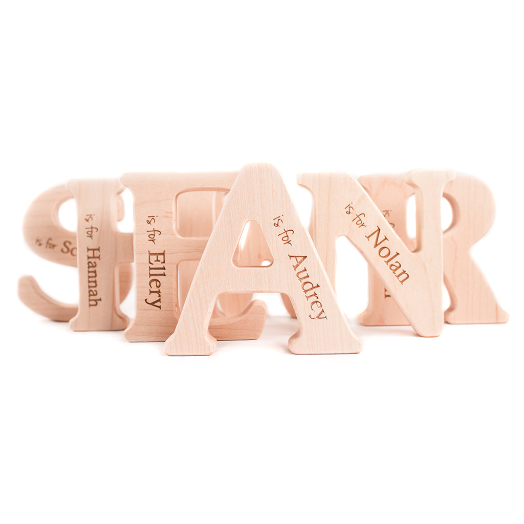 The personalization element — name puzzles, birth blocks, monogrammed crates — addresses the specific appeal of heirloom toys for gift buyers. A personalized hardwood block set is a different category of gift than a mass-produced plastic toy: it records the child's name and birth date in durable, beautiful material that parents are likely to keep long after the child has grown. The company's partnership with Trees for the Future plants a tree with every purchase.