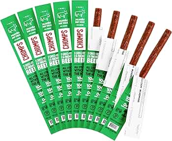 Chomps meat sticks are produced and distributed in the USA. Company founded in Chicago, IL in 2012 by Pete Maldonado and Rashid Ali. Uses 100% grass-fed and finished beef, antibiotic-free chicken and turkey sourced from US farms. All products are Whole30 approved, Paleo, Keto, and non-GMO. Zero sugar and no artificial preservatives. Available at Trader Joe's, Target, and Amazon. Fastest growing snack brand in the US in 2024.