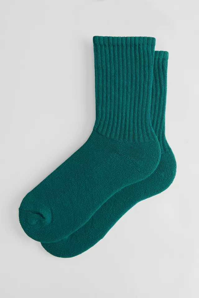 Classic solid crew socks knit in North Carolina. American Trench, Philadelphia. Ring-spun cotton for superior softness. Ribbed cuff stays up, reinforced heel and toe for durability.