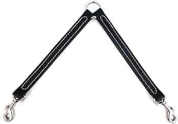 Handcrafted leather dog coupler for walking two dogs simultaneously. Made in the Finger Lakes region of New York from full-grain American bridle leather. Adjustable for comfortable dual-dog walking.