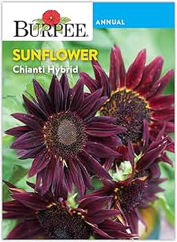 Burpee Mammoth Sunflower Seeds, 7gm non-GMO heirloom seed packet. Towers up to 12 feet with flower heads up to 12 inches. Pollinator-friendly annual. From Burpee, Pennsylvania-based seed company founded in 1876.