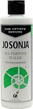 Jo Sonja All Purpose Sealer in 8 oz bottle. Pure acrylic medium with remarkable adhesive powers. Durable and versatile surface sealer for wood, metal, glass, terracotta, paper, and fiberboard. Made in the USA by Chroma Inc.