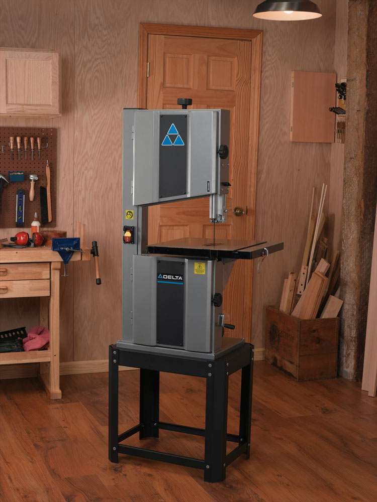 14-inch band saw. Made by Delta Machinery, Anderson, South Carolina. Cast iron table, adjustable blade guides, rack-and-pinion blade tension. American woodworking machinery heritage.