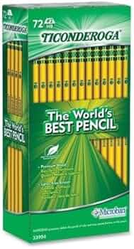 Classroom-ready 72-count box of Ticonderoga #2 pencils with premium graphite core bonded to wood casing for break-resistant sharpening. Made in the USA.