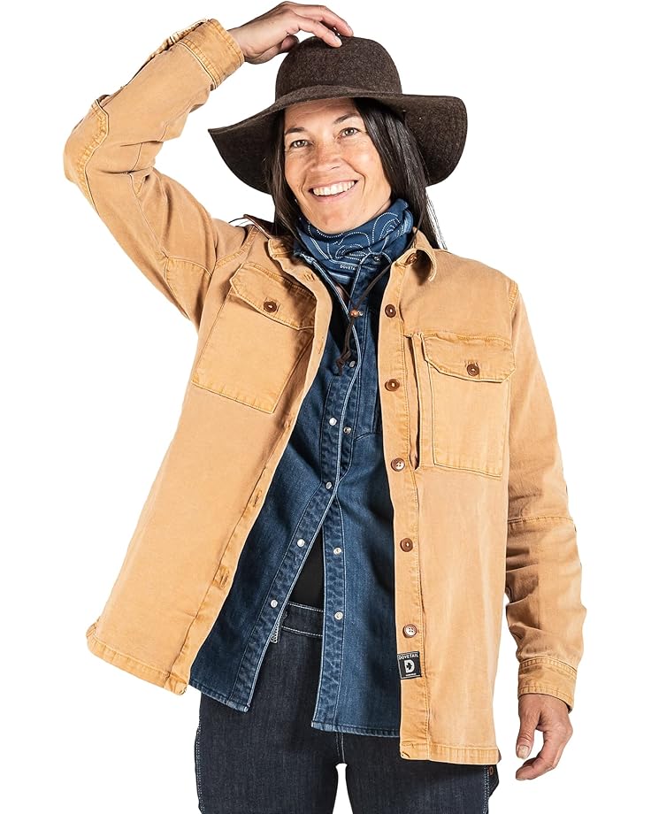Women's utility work jacket in DWR-coated canvas. Made in USA. Designed for tradeswomen with functional pocket placement and proportions for female construction workers.