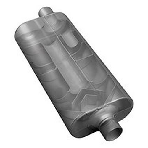 Flowmaster 70 Series Big Block muffler for high-horsepower street applications. 3-inch inlet/outlet, extended body, quiet interior sound. Made in Santa Rosa, California.