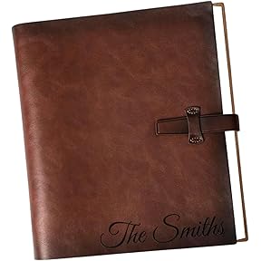 Refillable 3-ring leather photo album with 18 clear-pocket pages holding 36 standard 8.5x11 documents or photos, 10.5x12 inches. Made in the USA. Premium leather with American handcraftsmanship.