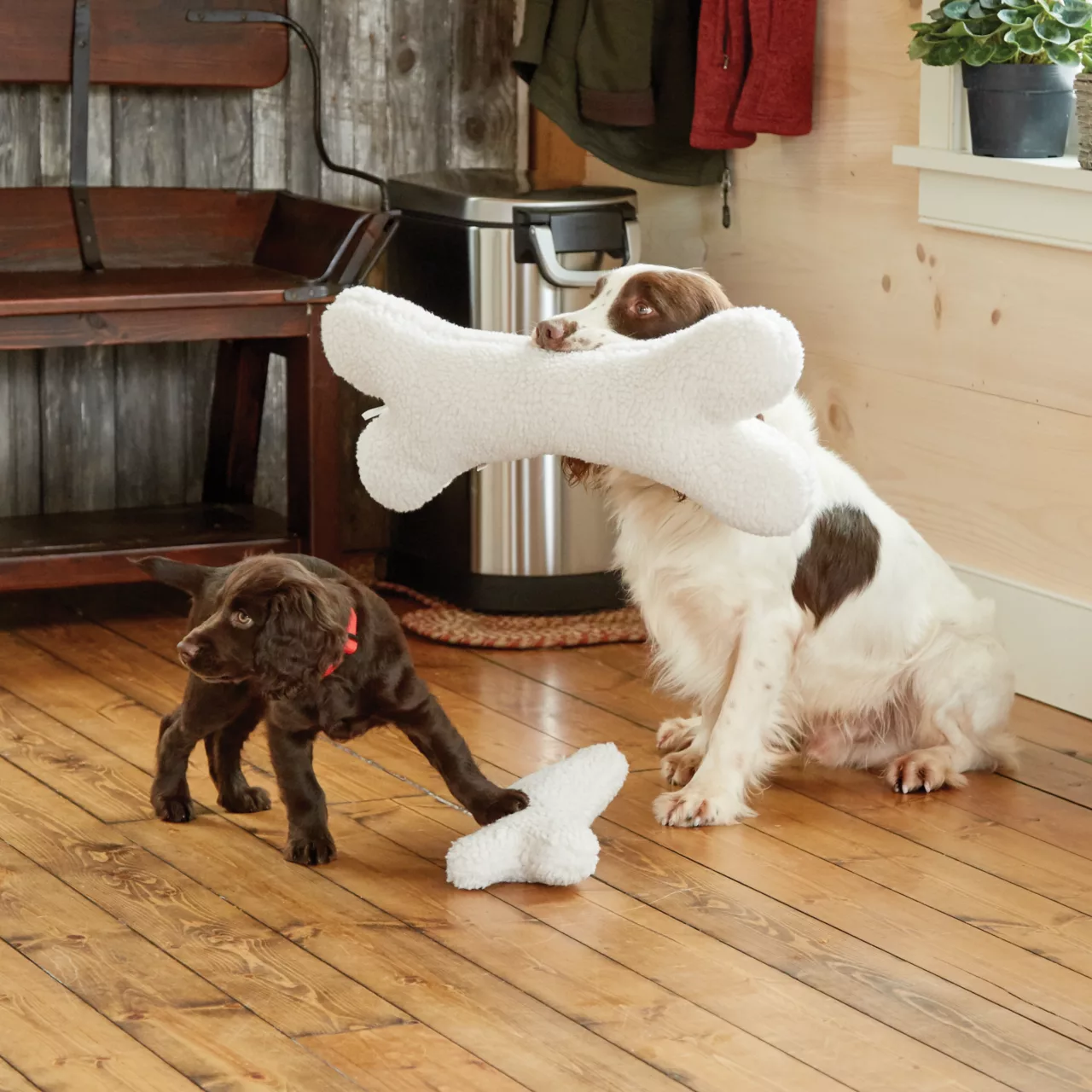 See all products made in VermontDurable plush dog toy with reinforced stitching. Designed in Manchester, VT since 1856. Squeaker inside.