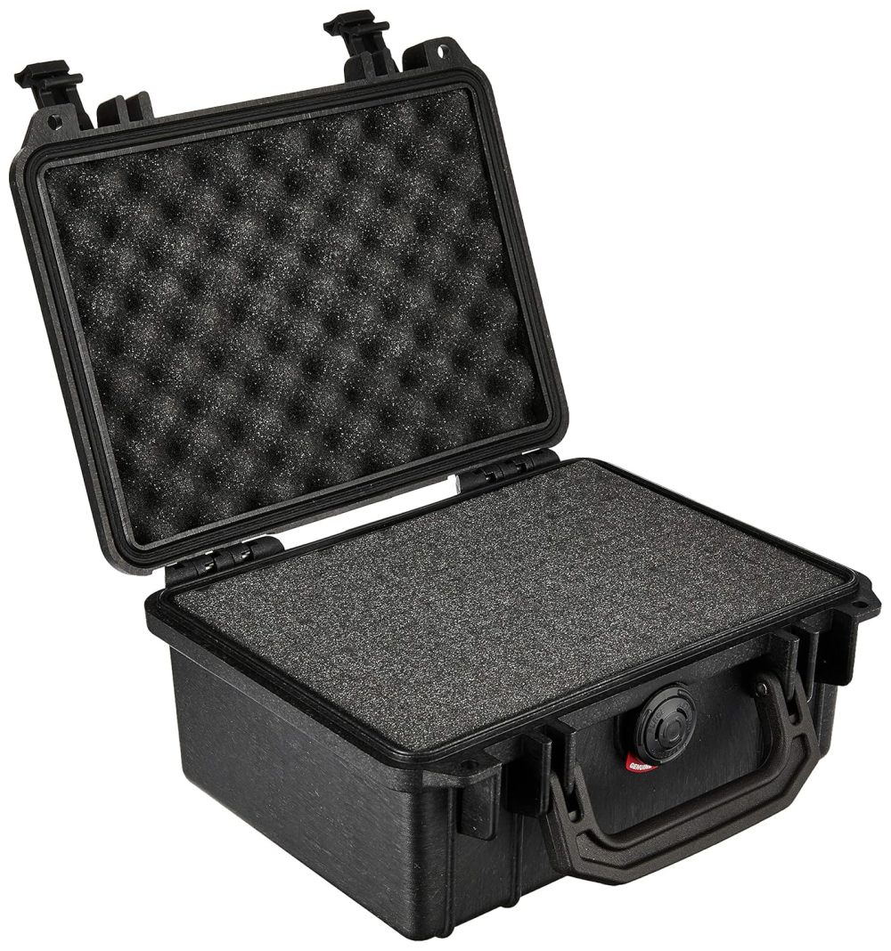 Compact protector case with automatic pressure equalization valve. Pick-N-Pluck foam included. IP67 rated watertight. Made in Torrance, California.