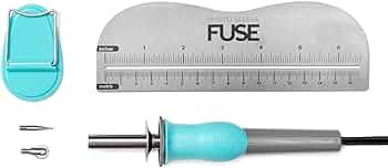 Heat fusion starter kit includes fuse tool, fusing tip, cutting tip, ruler, and stand. Bonds photo sleeves and plastic pockets without adhesive. Made by American Crafts / We R Memory Keepers.