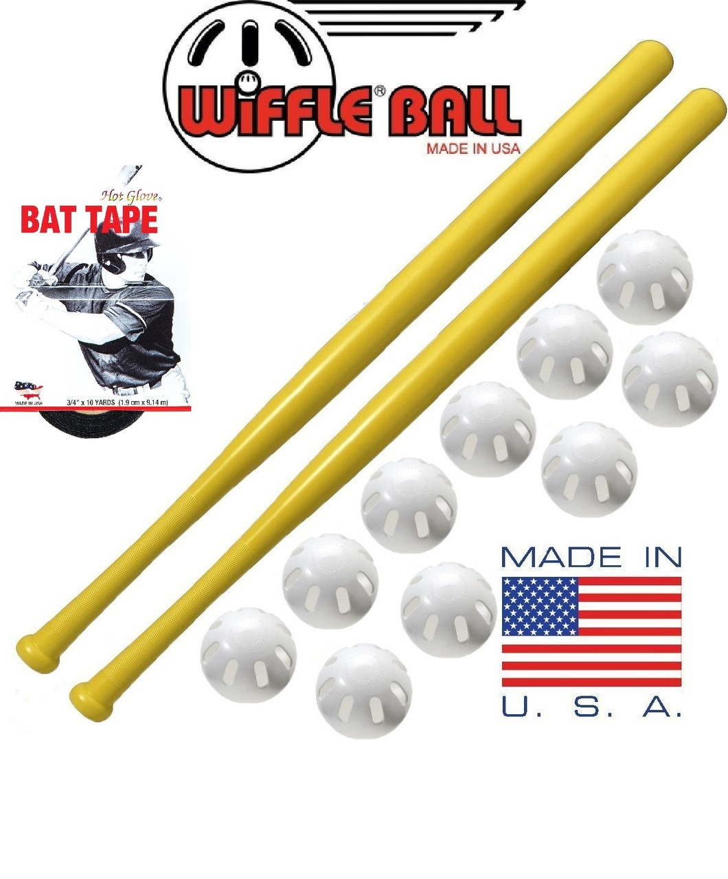 Official WIFFLE ball and bat set for backyard play. Perforated ball for curves and wobbles. Classic yellow bat. Made in Shelton, Connecticut since 1953.